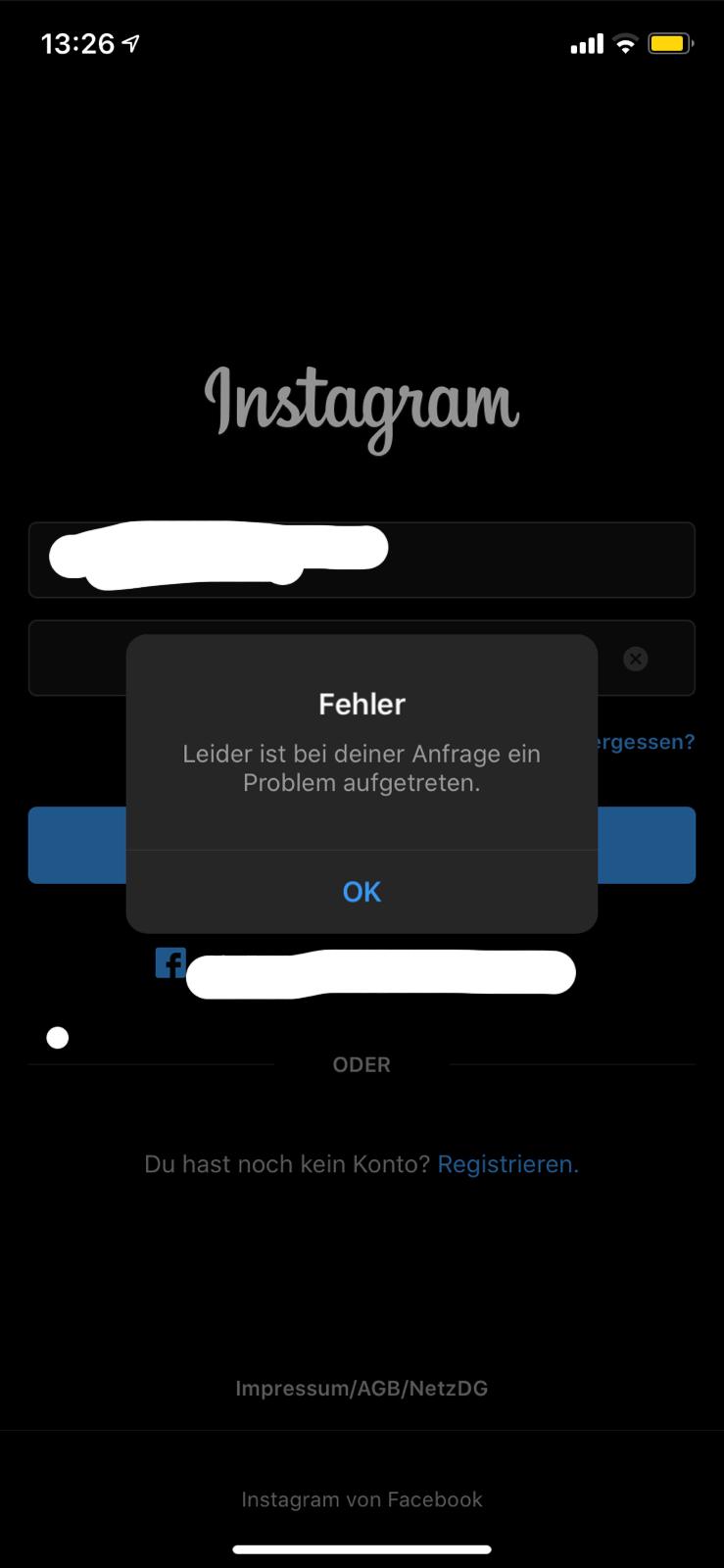 Instagram Anmeldung nicht möglich.