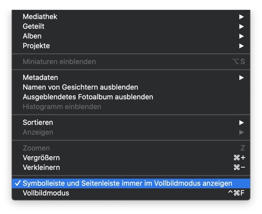 Wie kann ich bei Fotos die Seitenleiste einblenden? Bei mir erscheint unter Darstellung kein Befehl "Seitenleiste einblenden". Oder wie kann ich Fotos in Alben kopiern ohne Seitenleiste?