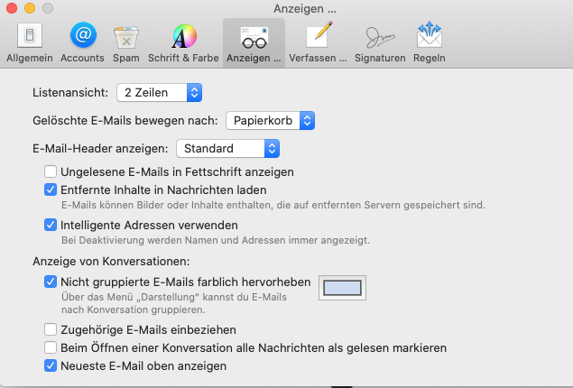 Apple Mail - Absenderansicht wechselt zwischen Name und Firma ständig