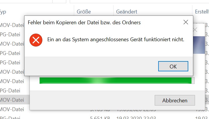 Habe auch bereits mehrfach den Pc oder das Iphone neugestartet, alles ohne Erfolg. Die Fehlermeldung kommt immer wieder. Meist kurz vor Ende des Kopiervorgangs.