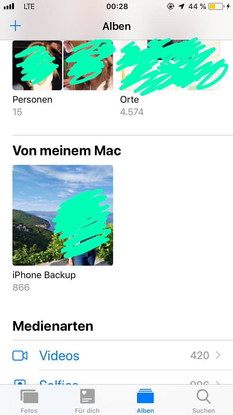 ich habe folgende Herausforderung: von einem Mac habe ich ein Album auf meinem iPhone, das als „Von meinem Mac“ bzw. „iPhone Backup“ bezeichnet wird. Auf den Mac kann ich nicht mehr zugreifen.