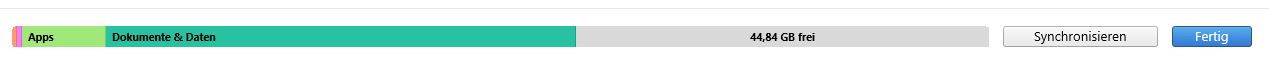 iTunes gibt wiederum sehr komische Daten an. Es seien alleine 26,3GB Dokumente und Daten am iPad aber noch 44,84GB frei. Dies würde alleine über 70GB Speicherplatz bedeuten, was mit einem 64GB iPad etwas daneben ist.