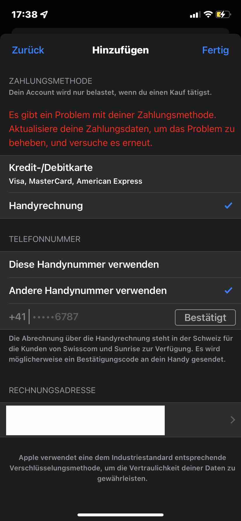 Apple-ID "Du hast nicht das gesamte Formular ausgefüllt."