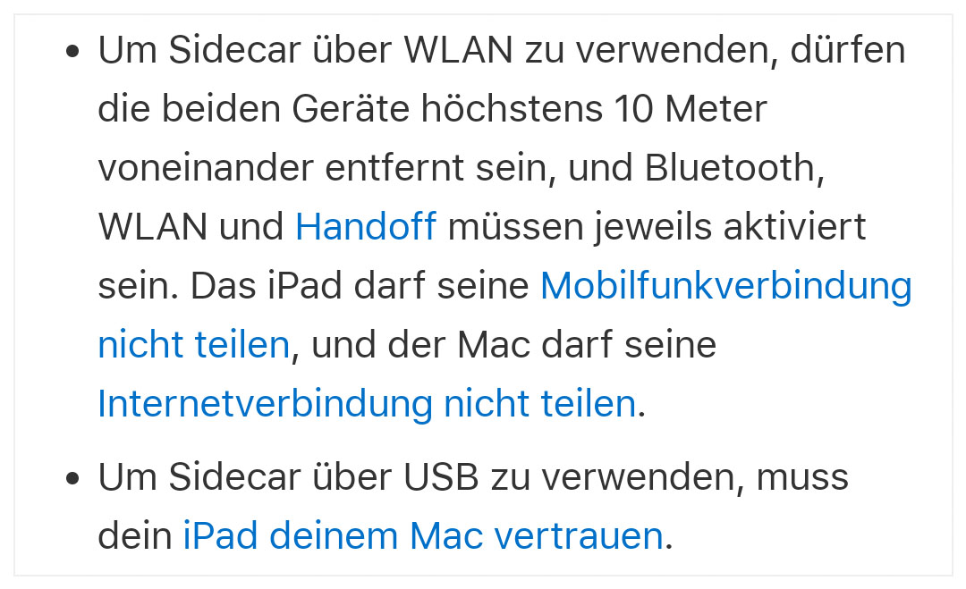 ich habe früher ein Macbook Pro 15" Late 2018 (Catalina) mit einem iPad (iPadOS 13) genutzt und da hat Sidecar funktioniert. Nun auf dem neuen Macbook Pro 16" Late2019 haut das nicht mehr hin.