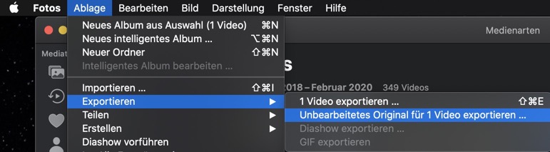 Sicherung des Aufnahmedatums von Videos in der App "Fotos"