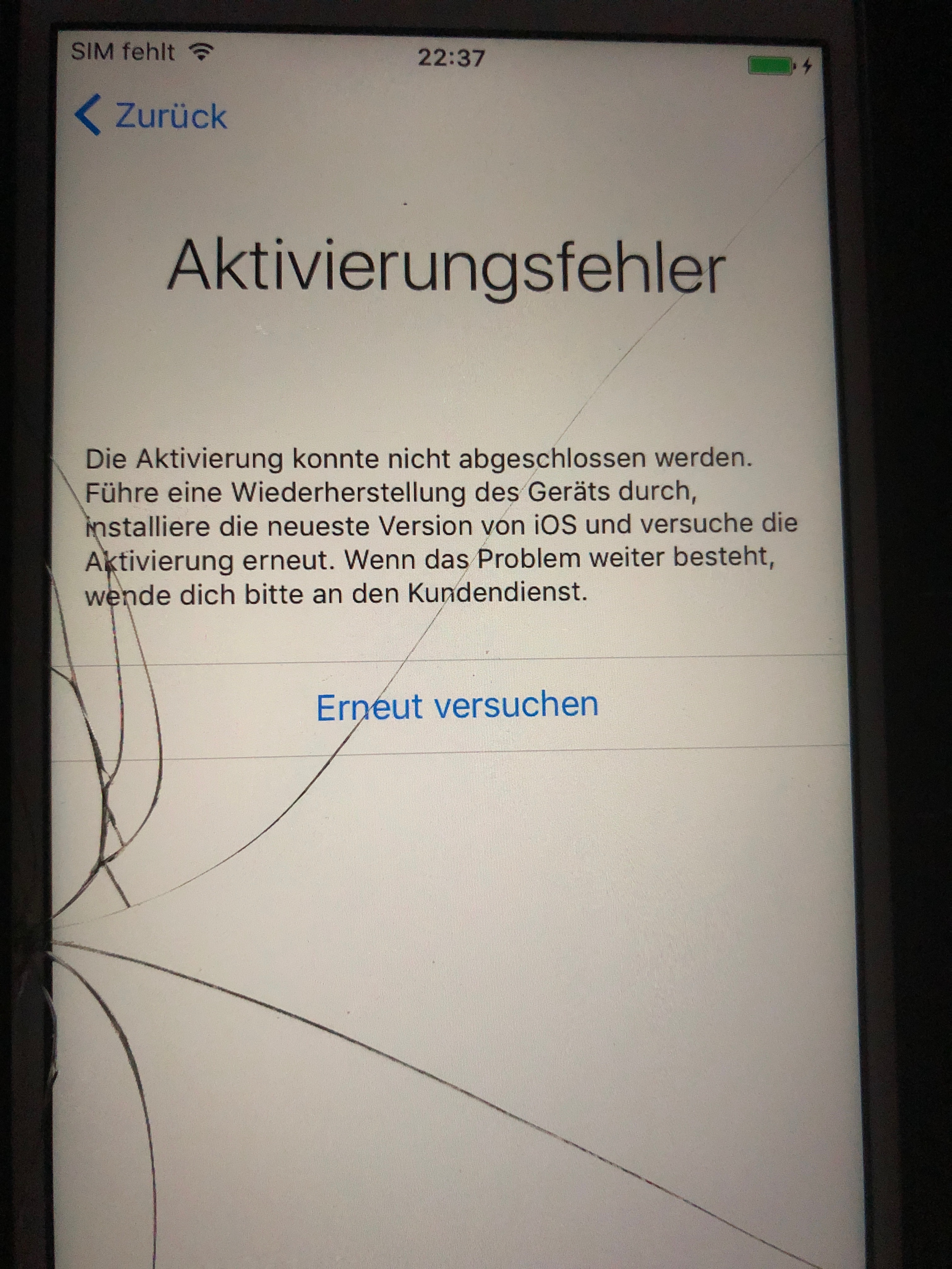 Hab einen Problem mit der Aktivierung (Iphone 6s) Hab es neugestartet aufeinmal hat sich das Iphone komplett zurückgesetzt da steht. (Die Aktivierung konnte nicht abgeschlossen werden. Führe eine Wiederherstellung dädes Geräts durch, installiere die neueste Version von iOS und versuche die Aktivierung erneut. Wenn das Problem weiter besteht, wende dich bitte an den Kundendienst..