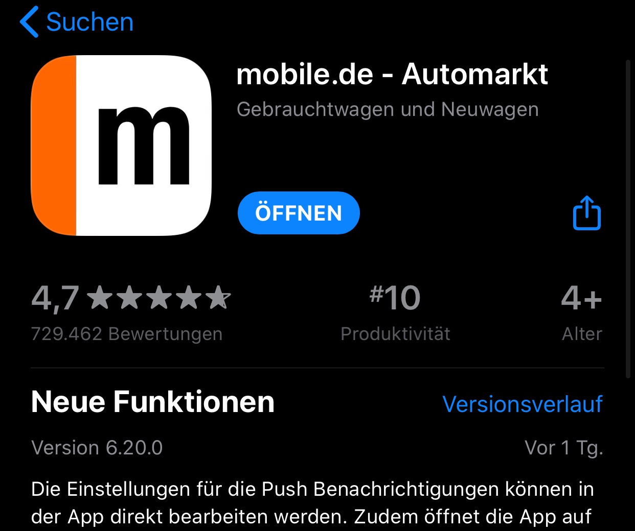 Unter Einstellungen > Mitteilungen ist mobile.de nicht einmal aufgeführt.
