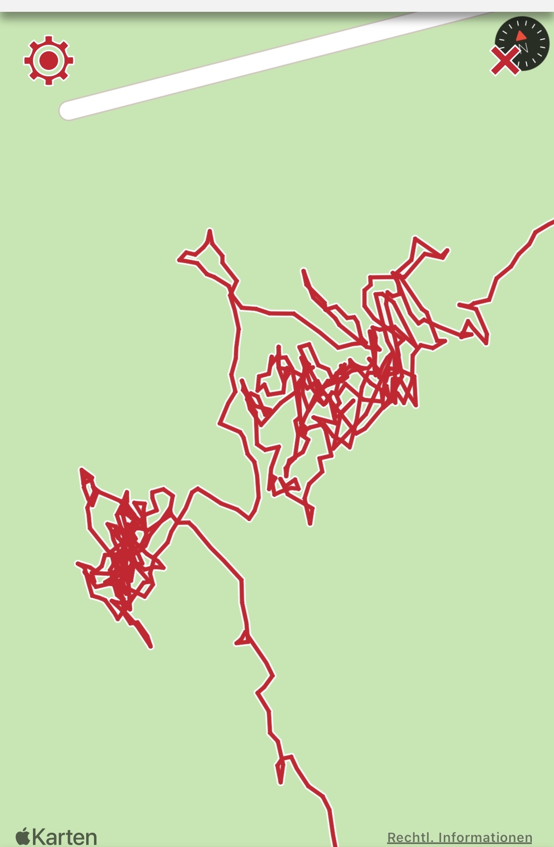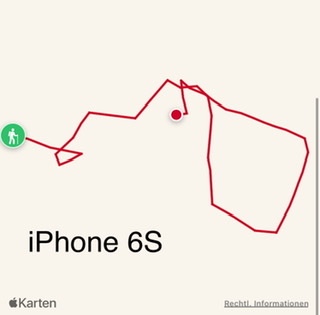 Bleibt man stehen, reicht es dabei nicht aus einfach nur stehen zu bleiben, sondern man sollte sich ein bisschen um die eigene Achse drehen. Das iPhone jeweils nah am Körper. Während das iPhone 6s davon völlig unberührt bleibt, fängt das iPhone 11 Pro an zu spinnen, weil es jedes Mal erneut versucht die Position zu bestimmen, was zu einem ordentlichen Chaos in der Aufzeichnung führt. Durch das schwächere GPS Signal des 11 Pro ist die Aufzeichnung sehr instabil. Die beiden Bilder im Anhang wurden jeweils in einem 10 Minuten Zeitraum erstellt.