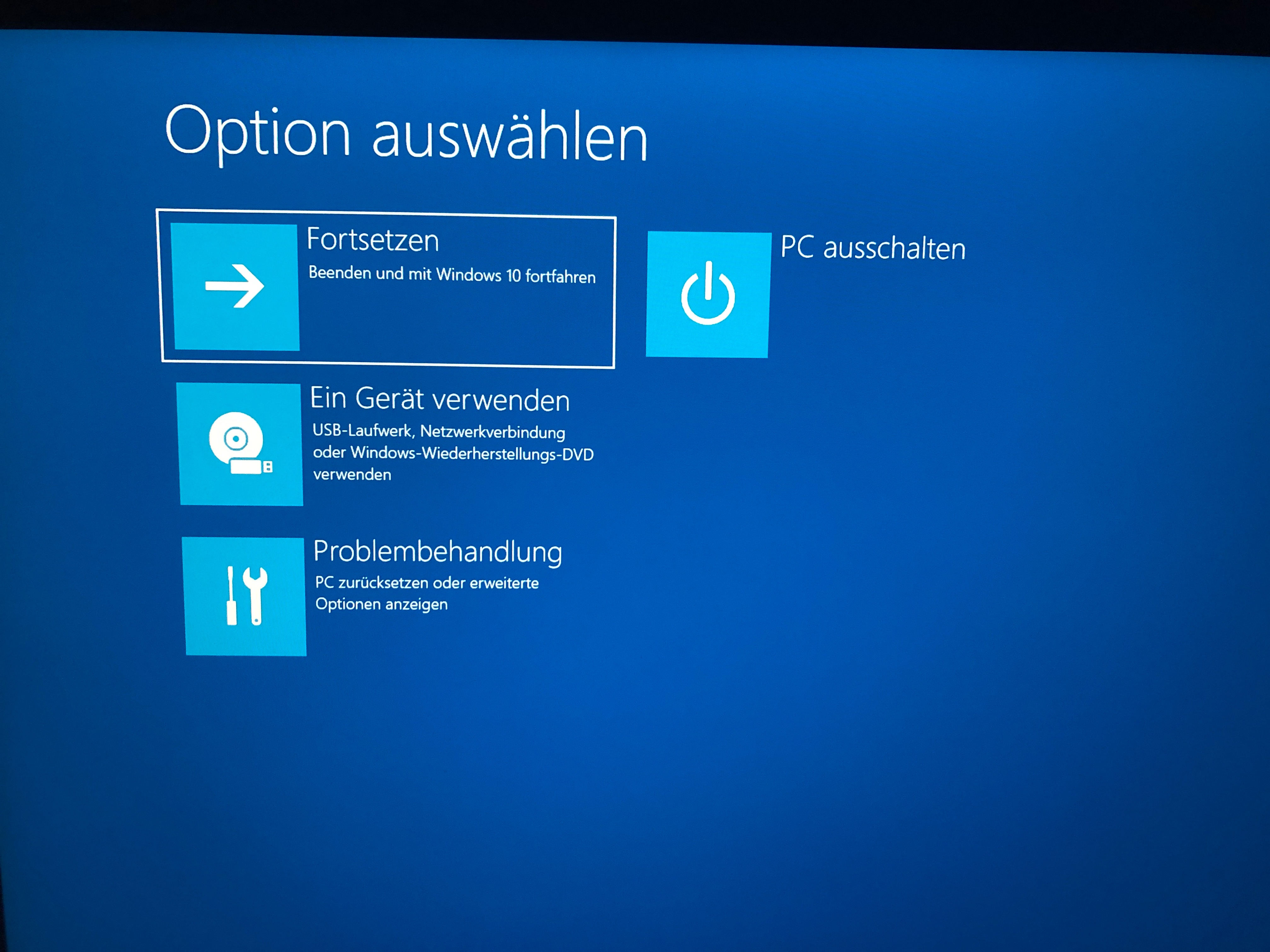 Windows 10 64-bit startet nicht und versucht mehrere Anläufe durch Neustarts bis dahin ich zu einem Blauen Bild komme und verschiedene Optionen habe wie z.b. PC ausschalten, zurücksetzen, Fehler Behebung usw.