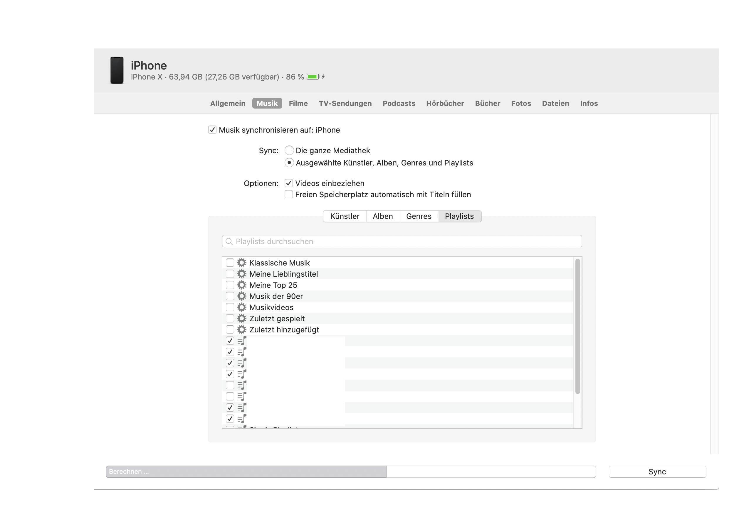 Noch ein Hinweis: In der Übersicht meines iPhones im Finder steht der Statusbalken unten permanent auf "Berechnen..." und dieser Status ändert sich auch nicht: