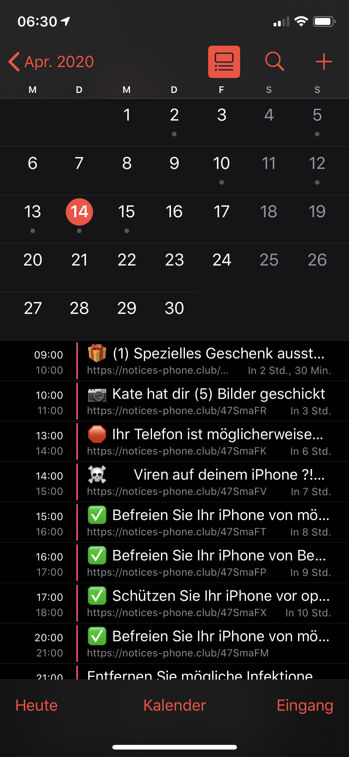 Kalender habe ich jeden Tag drauf wie kann ich löschen ? Mit freundlichen Grüßen