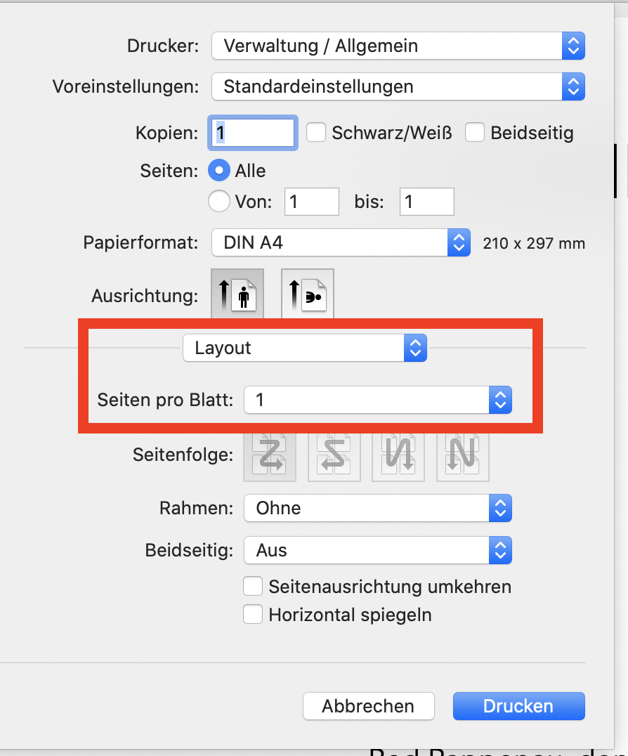 Druckoptionen - Mehrere Seiten einer Datei auf einem Blatt drucken