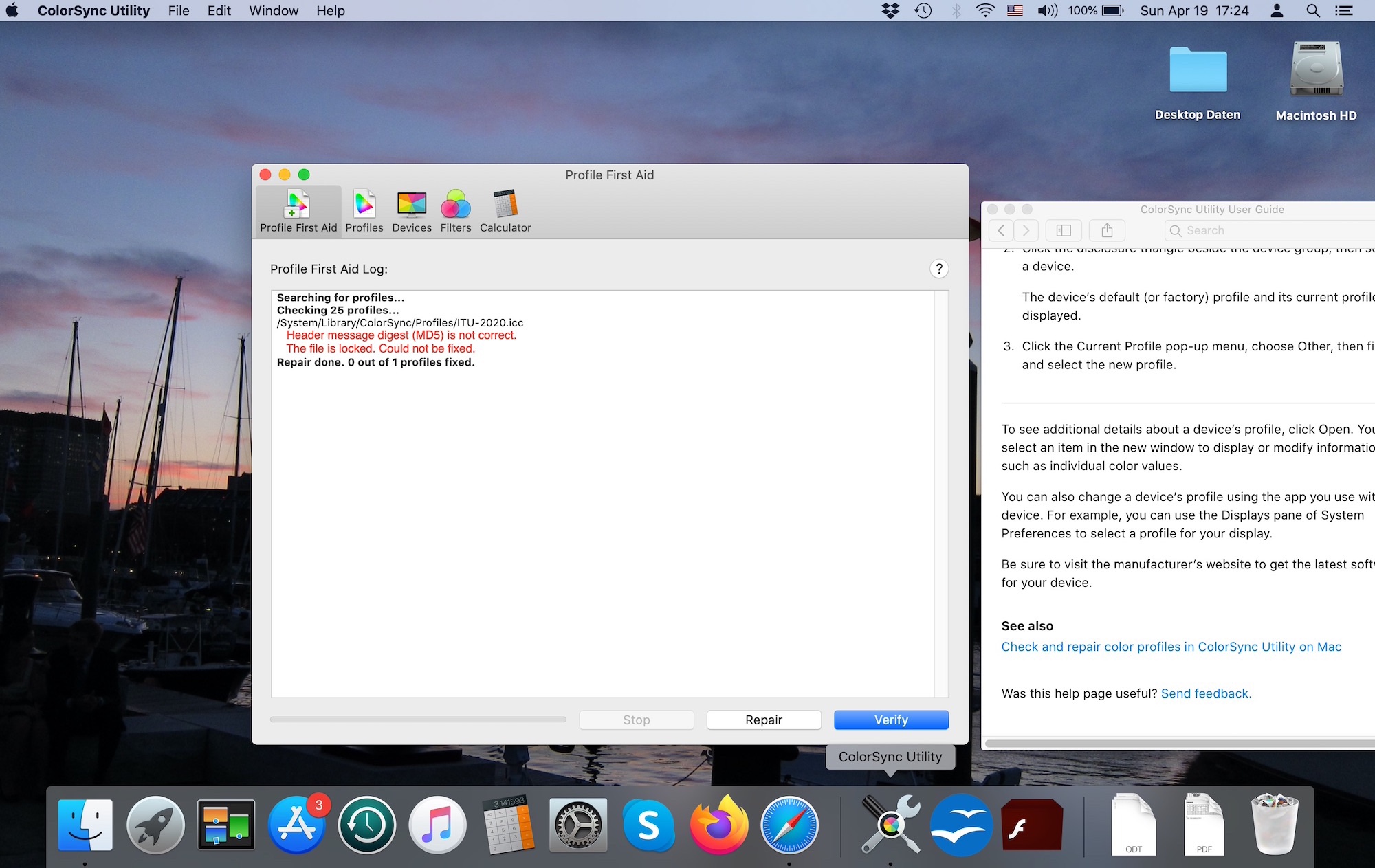 I have a message from ColorSync Utility and it says "Header message digest(MD5) is not repairable. I was told to delete the ITU-2020-icc. I went through HD-System-Library-ColorSync-Profiles but still can't remove it. It's telling me I only have reading permission. How do you delete the ITU-2020-icc from ColorSync Profile? I have Catalina 10.15.4