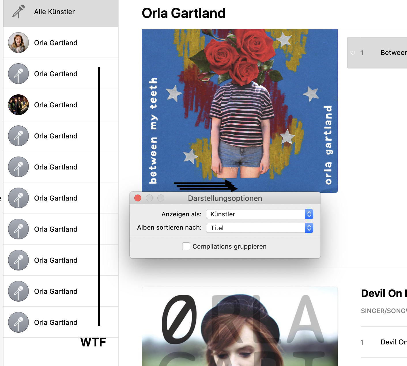 Darstellungsoption Künstler - Künstlernamen mehrfach vorhanden