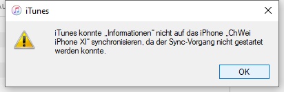 über iTunes synchronisieren und nicht sofort nach der Veränderung des Kontakts