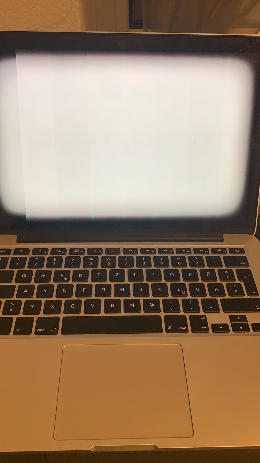 Er war angeschaltet, aufgeklappt und ist auf das untere Gehäuse gefallen.Äußerlich keine Schäden, aber wenn ich ihn anschalte, dann zeigt er nur einen weißen Bildschirm. Ich habe es extern versucht mit dem Fernseher per HDMI zu verbinden, aber das hat nur für 1-2 Sekunden ein Bild angezeigt und danach nichts mehr. Alle Tastenkombinationen um ins Menü zu gelangen funktionieren nicht, der Bildschirm bleibt so weiß.