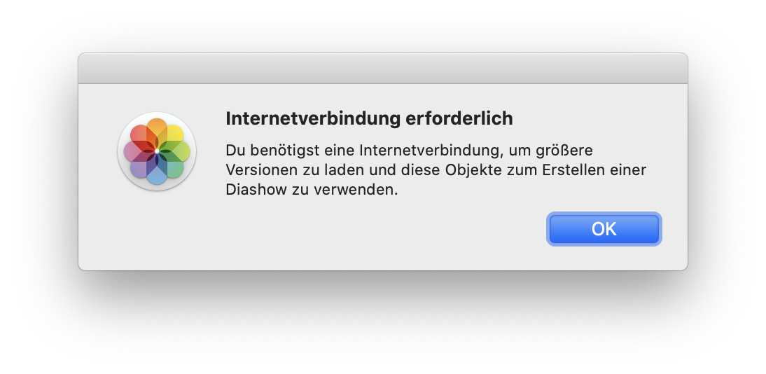 Diashow in Fotos bringt zwei Fehlermeldungen