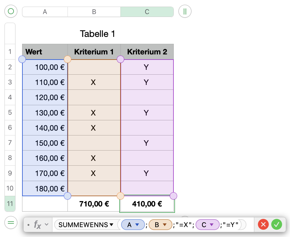 Formel TEILERGEBNIS in Numbers?
