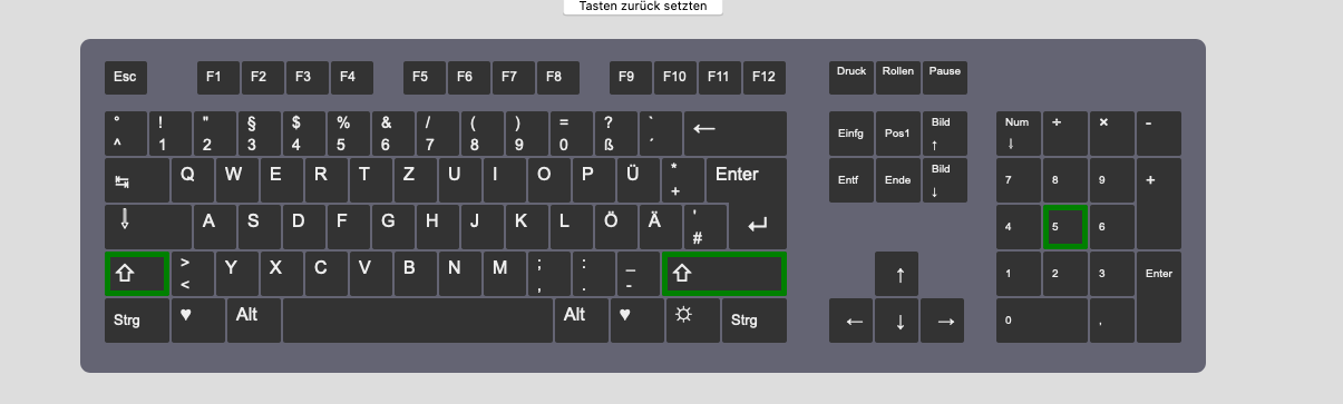 Drücke ich die „Shift“ Taste wird automatisch auch die Zahl „5“