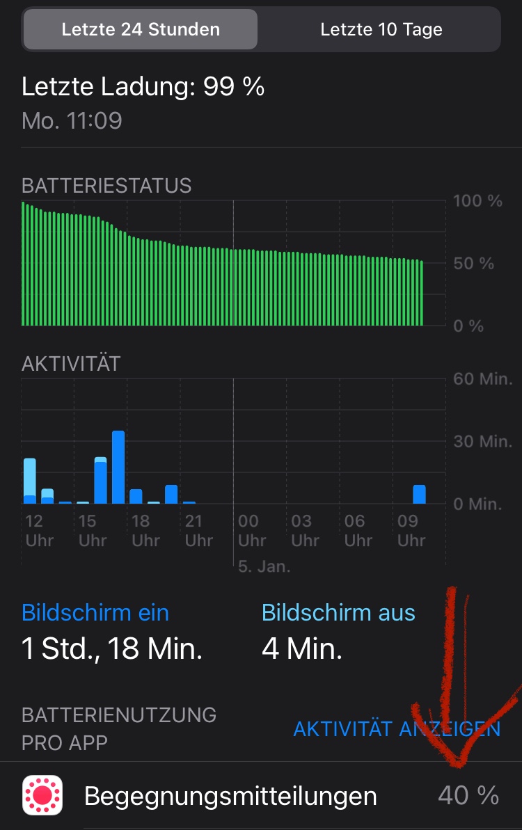 danke für die Tips, aber leider ist es so, dass bei deutlich weniger Aktivität plötzlich mehr Akkuverbrauch da ist. ich habe mein iPhone jetzt komplett wiederhergestellt, leider bracht das keine Verbesserung, siehe Screenshot von heute. Das ist definitiv nicht normal. Bei 2 stunden ohne Aktivierung des Displays darf der Akku in der Zeit nicht um mehr als 25% abfallen, das hatte ich noch nie und ich hatte diverse iPhones seit 2008!