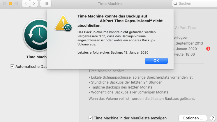 Time Machine konnte das Backup auf der Time Capsule nicht abschließen
