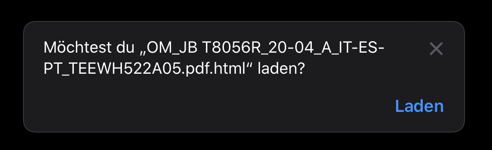 Klicke ich mit dem iPad auf diesen Link, wird das Dokument automatisch runtergeladen mit der Bezeichnung xyxyxyx.pdf.html,