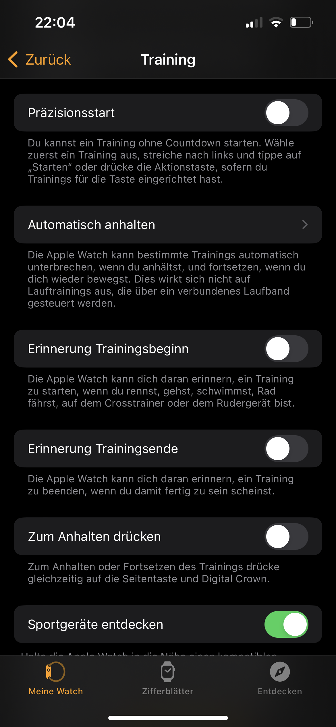 Training auf Apple Watch wird immer wieder angehalten