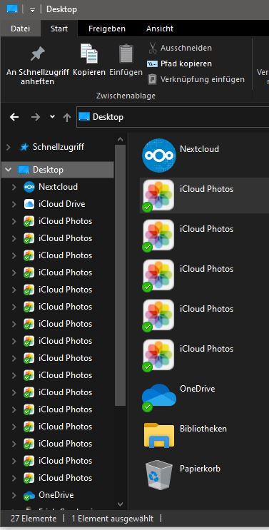 Icloud-Fotos.Icons werden mehrfach in Windows 10 Dateiexplorer angezeigt