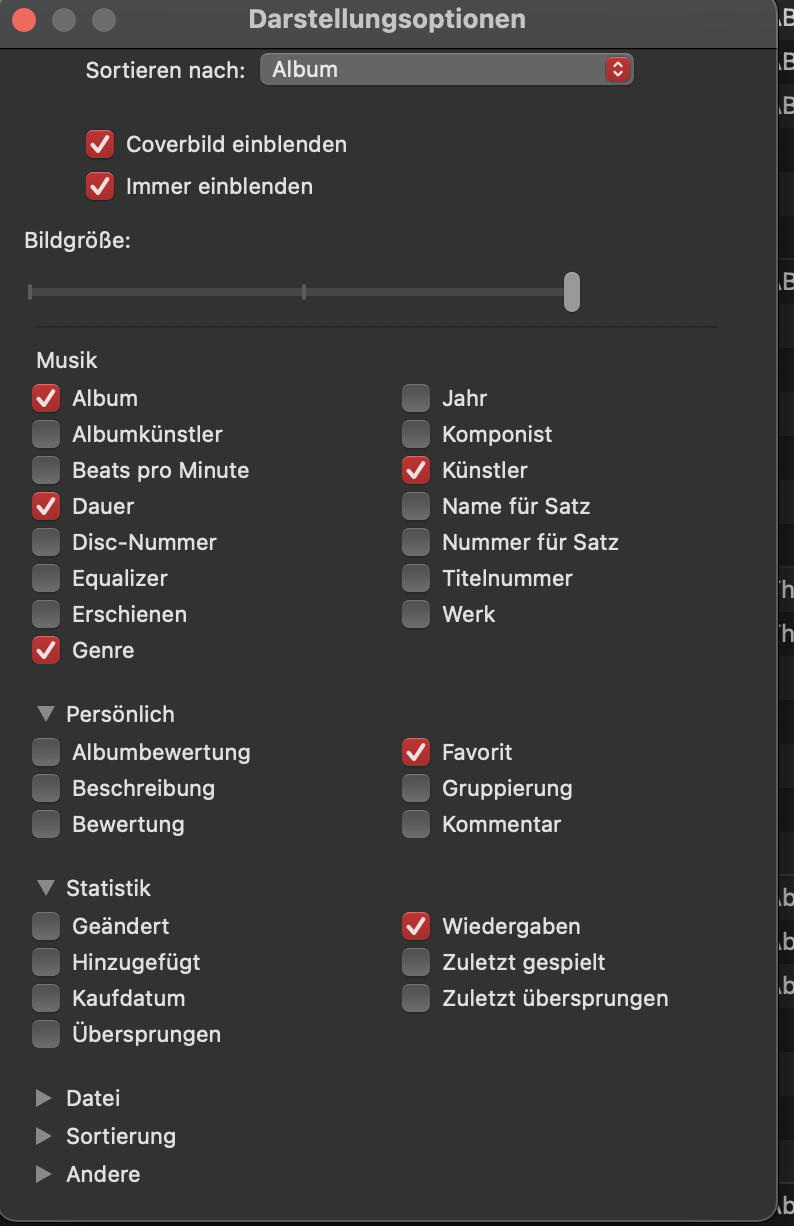 Erfreuliches Feedback nach dem ich Big Sur auf dem Rechner habe: die Cover, zumindest die der gekauften Titel, sind alle wieder da! Allerdings musste ich teilweise etwas nachhelfen- dann im Infofenster auf Cover gehen und durchscrollen, bzw. unten in der Ecke auf die Pfeile gehen, Titel anspielen hilft auch und dann weiter klicken. Unter Catalina waren die Cover unter Info ja immer sichtbar, nun teilweise nicht mehr, was mich zuerst beunruhigte. Auch unter Catalina funktionierte es teilweise so, aber nur mit sehr wenigen Alben.