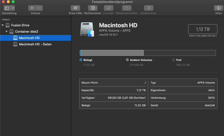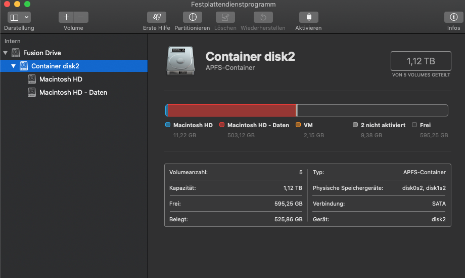 ich habe meinen MacBook Pro (Mitte 2012, 1 TB SSD) aufgrund eines Problems neu aufsetzen wollen. Dazu habe ich die Festplatten (SSD und SSD - Daten) per Festplattendienstprogramm gelöscht (APFS). Daraufhin habe ich per Recovery Mode OSX neu geladen (Catalina). Nachdem es ca 8 Stunden geladen hat, wurde mir angezeigt, dass OS X nicht installiert werden konnte, da die