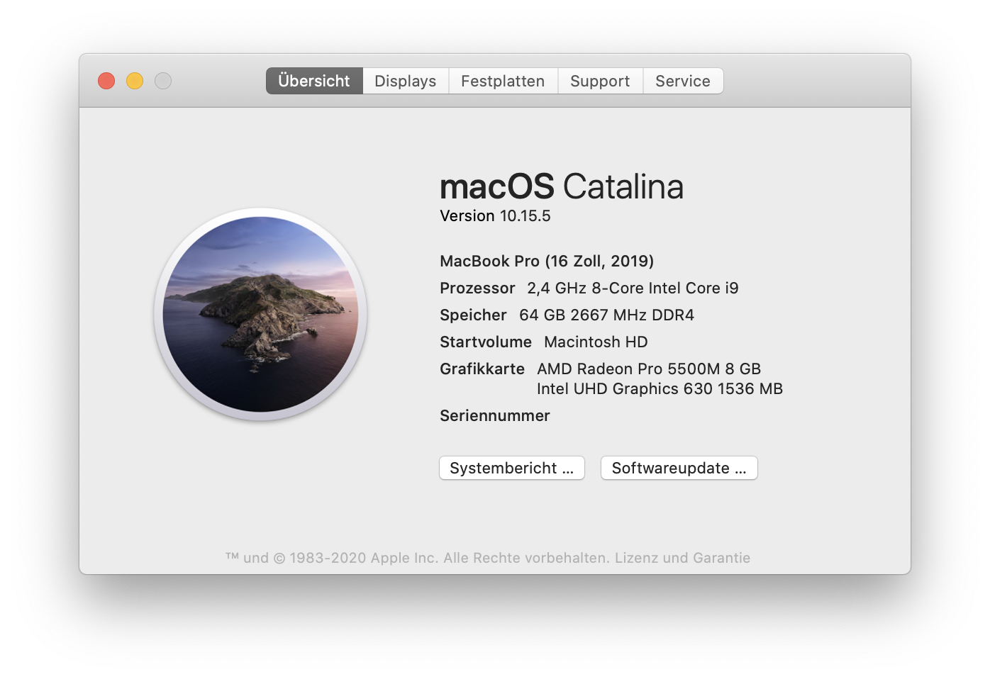 MacBook Pro 16″, macOS 10.15