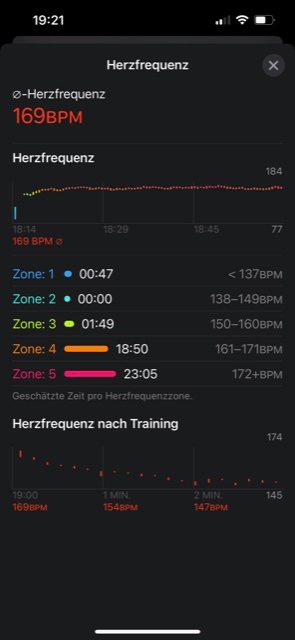 Jetzt wollte ich sehen, was während des Trainings der höchste Puls war, aber finde es nicht.