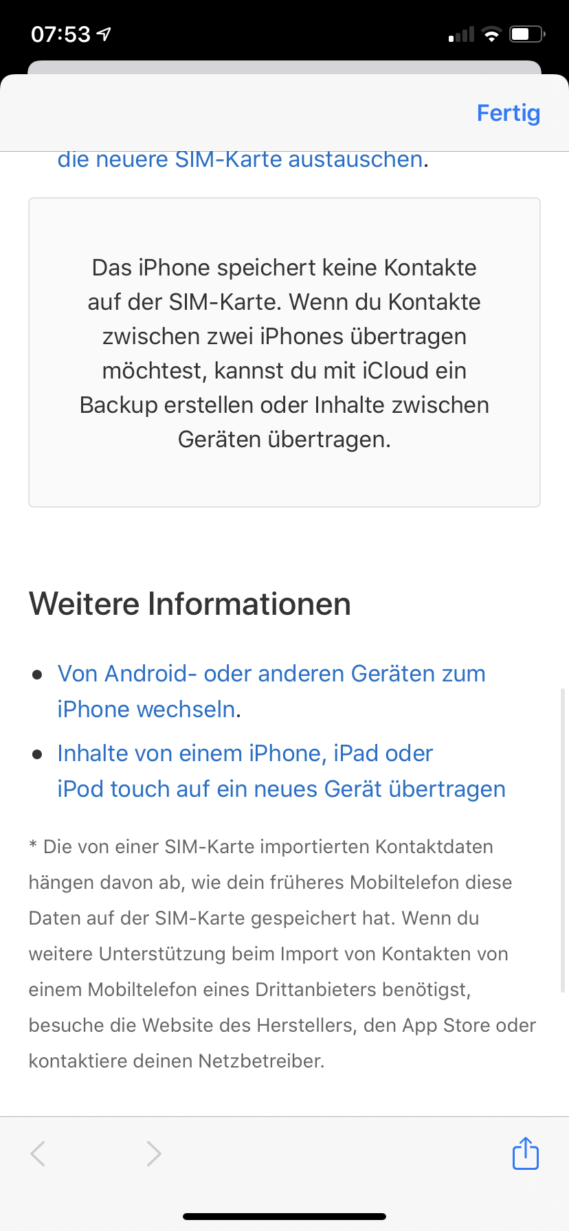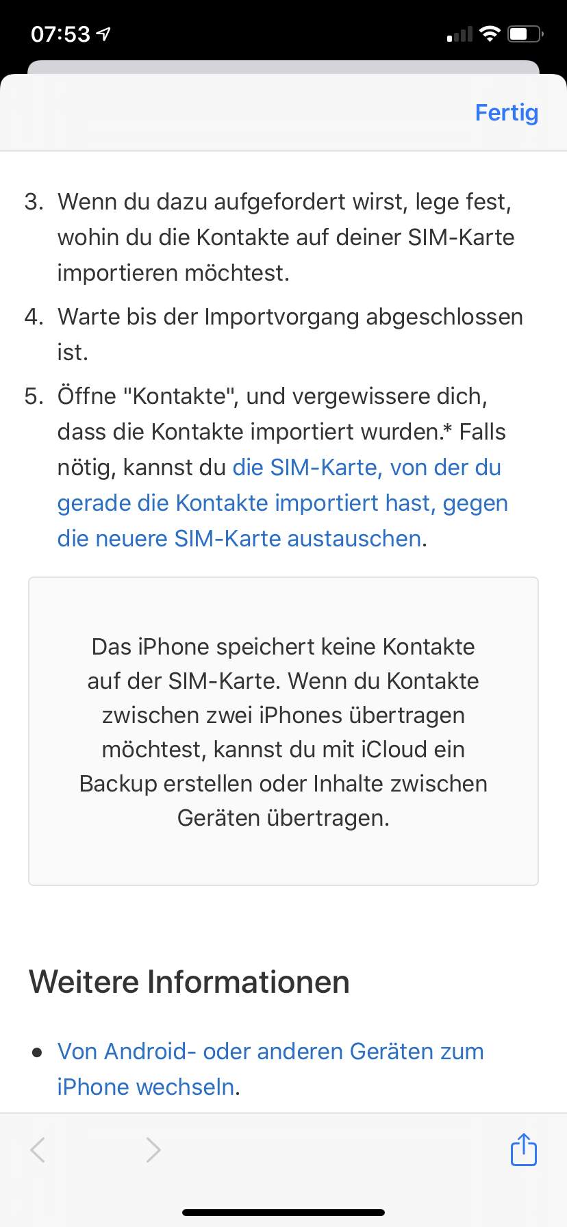 Hallo, man kann Kontakte von der SIM Karte aufs iPhone importieren. Gehe hierzu auf: