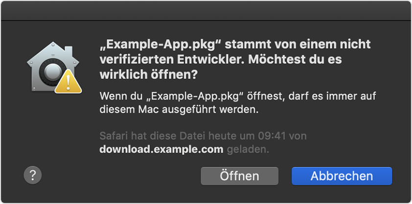 Falls Sie sicher sind, dass eine App, die Sie installieren möchten, aus einer vertrauenswürdigen Quelle stammt und nicht manipuliert wurde, können Sie die Sicherheitseinstellungen Ihres Mac vorübergehend außer Kraft setzen und die App öffnen.