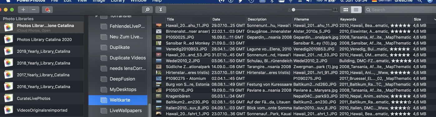 Ich habe oft meine Mediathek gleichzeitig in PowerPhotos und Photos geöffnet, so dass ich zwei Alben vergleichen kann.