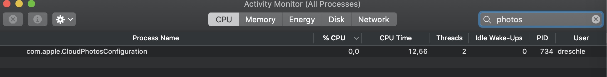 bzw. Zusatzfrage: Warum habe ich unter 1c) beim „Ruhezustand“ sehr viele Lese/Schreibzyklen auf dem Drive wo sich meine .photoslibrary Dateien befinden?