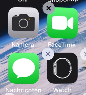 Kann man das kleine Kreuz sehen, um die App zu löschen?