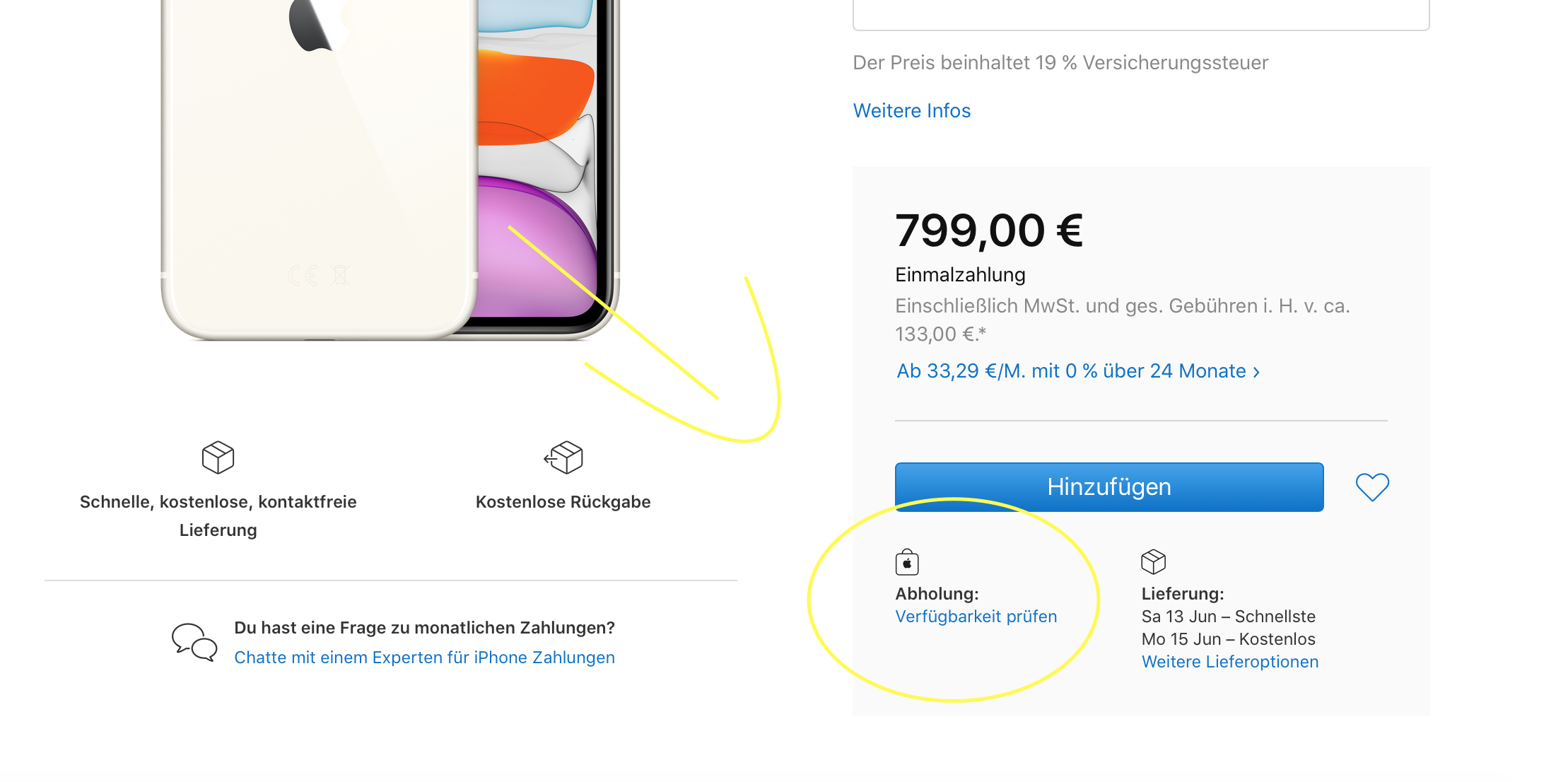 Wenn ich ein iphone kaufe, kann ich auch die option auswählen, das ich das iphone direkt im store abhole.