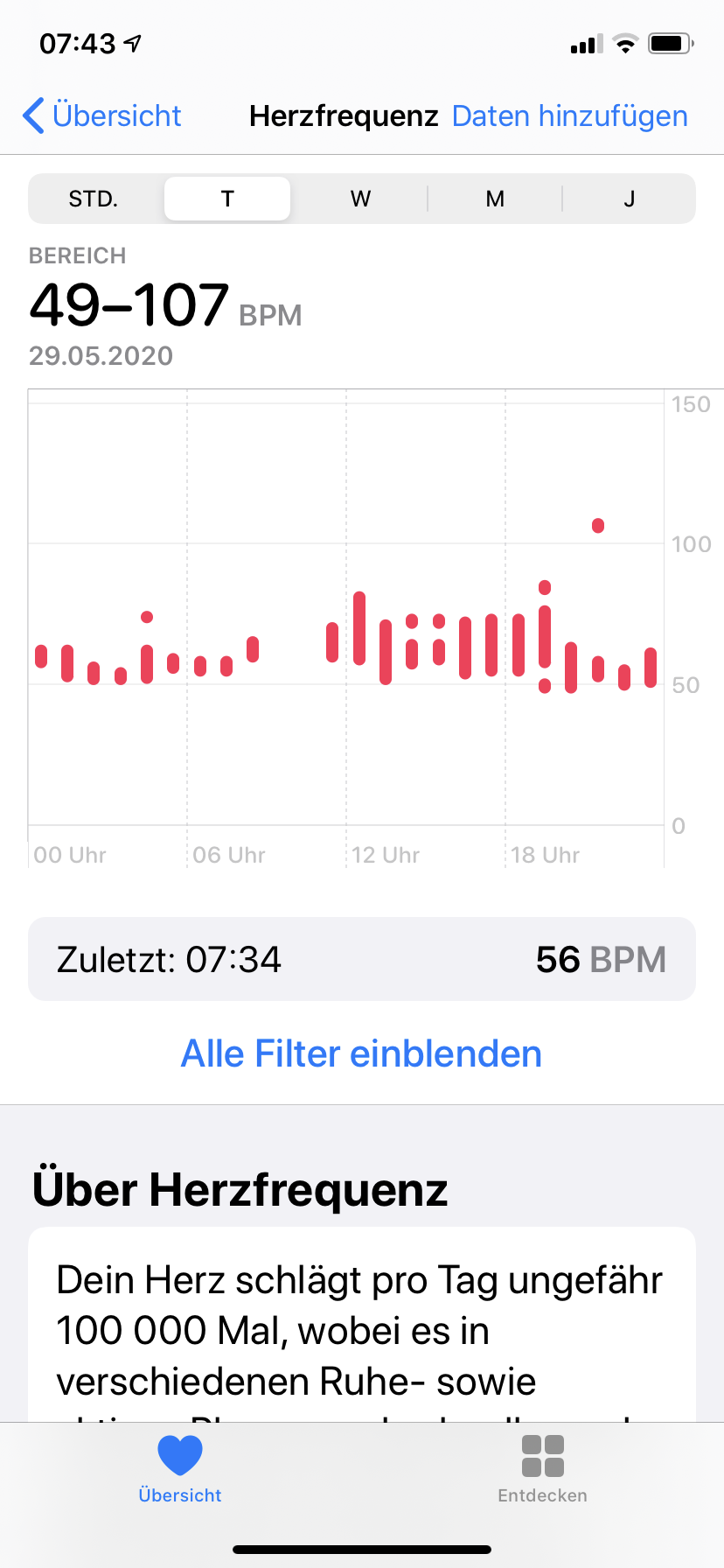 Ich kann mir manchmal den Verlauf der Aufzeichnungen nicht erklären. Die Werte sind relativ gleichmäßig und auf einmal ein Wert der westlich höher oder tiefer ist. Zum Beispiel: durchschnittlich 50 bis 85 und dann eine Aufzeichnung über 100 ohne das ich mich körperlich höher belastet habe