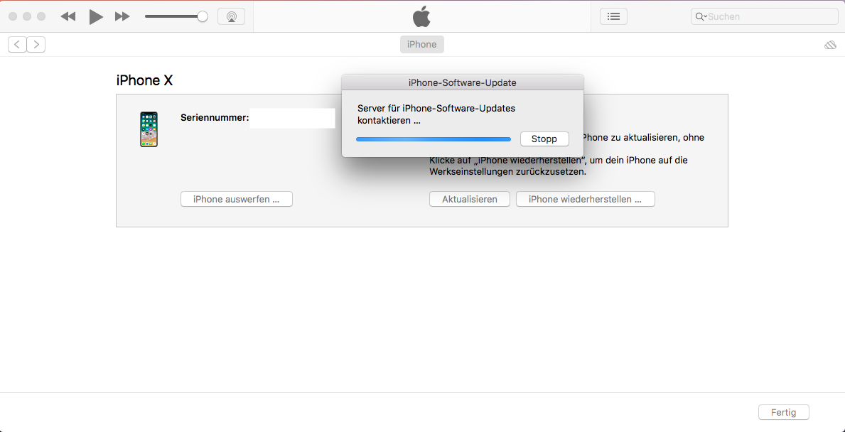 itunes verbindet sich zwar mit dem handy, bleibt jedoch im "server für iphone-software-updates kontaktieren" dings hängen (siehe bild). Laut Apple support heute mittag (der scheint mir jedoch äusserst zweifelhaft) soll ich komplett auf catalina updaten, das sei problemlos möglich. ist es aber nicht, weil meine festplatte voll ist und ich nichts löschen kann.