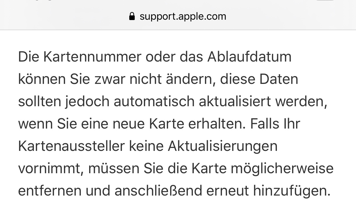 Apple schreibt dazu, dass man in diesem Fall überhaupt nichts zu unternehmen braucht. Die Bank ändert das im Hintergrund automatisch.