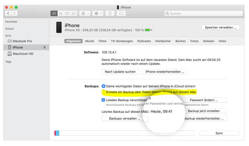Ich möchte grundsätzlich mein Backup mittels iTunes nur auf meinem Rechner machen.