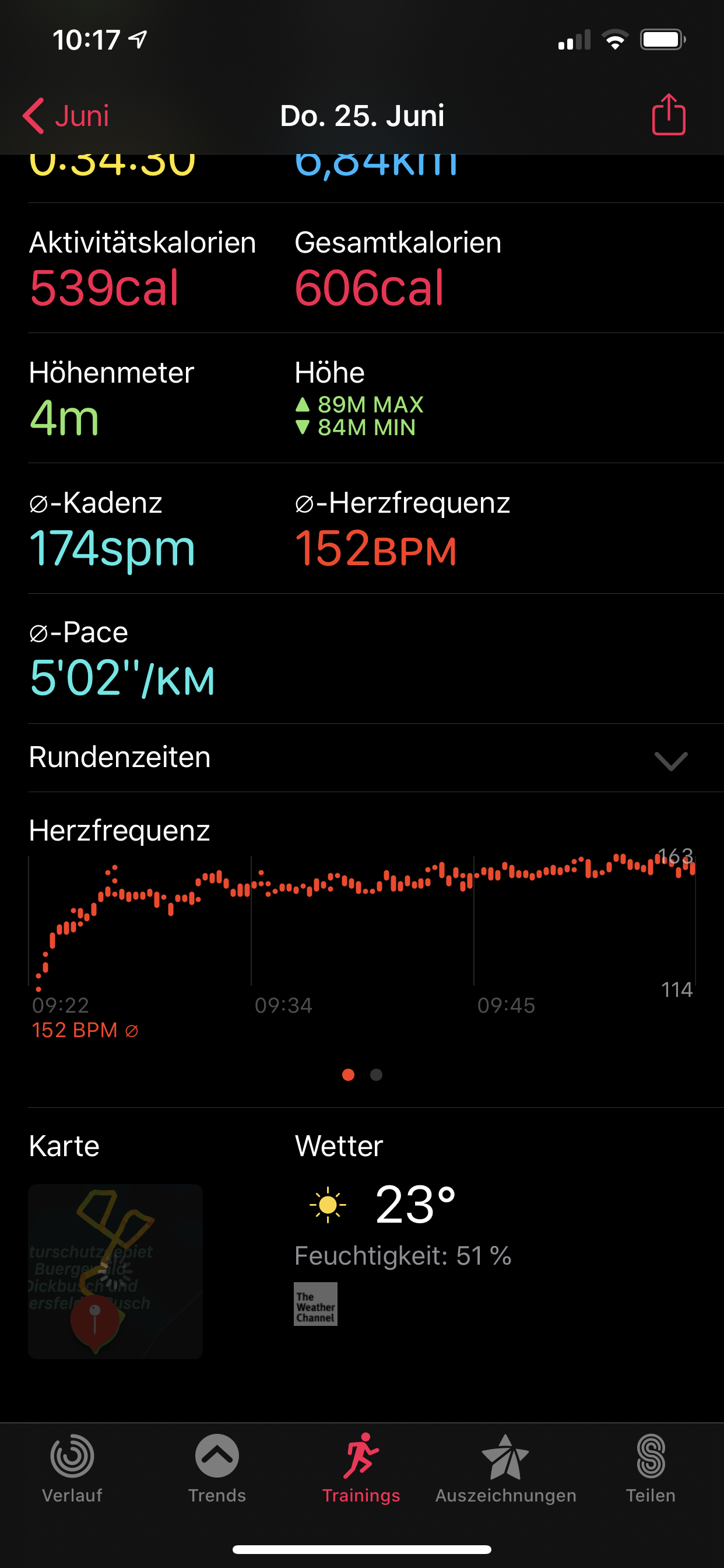 nachdem ich meine Laufeinheit mit meiner Apple Watch 5 GPS beendet habe, schaue ich mir diese auf meinem iPhone 11 Pro max in der Applikation "Aktivitäten" an. Meistens werden mir alle Daten angezeigt. Heute fehlten aber zum zweiten Mal innerhalb von zwei Wochen die Karteninformation. Diese werden nicht vollständig geladen. Das Miniaturbild der Karte in der App ist dunkler als normal. Als Nebeneffekt, kann ich dieses Training nicht mit Karteninfos in Strava importieren. Haben sie vielleicht einen Tipp was ich falsch mache?