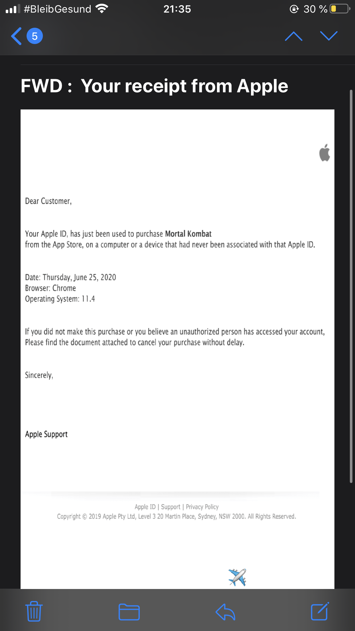 Ich erhalte verdächtige E-Mails für Käufe die ich nicht getätigt habe