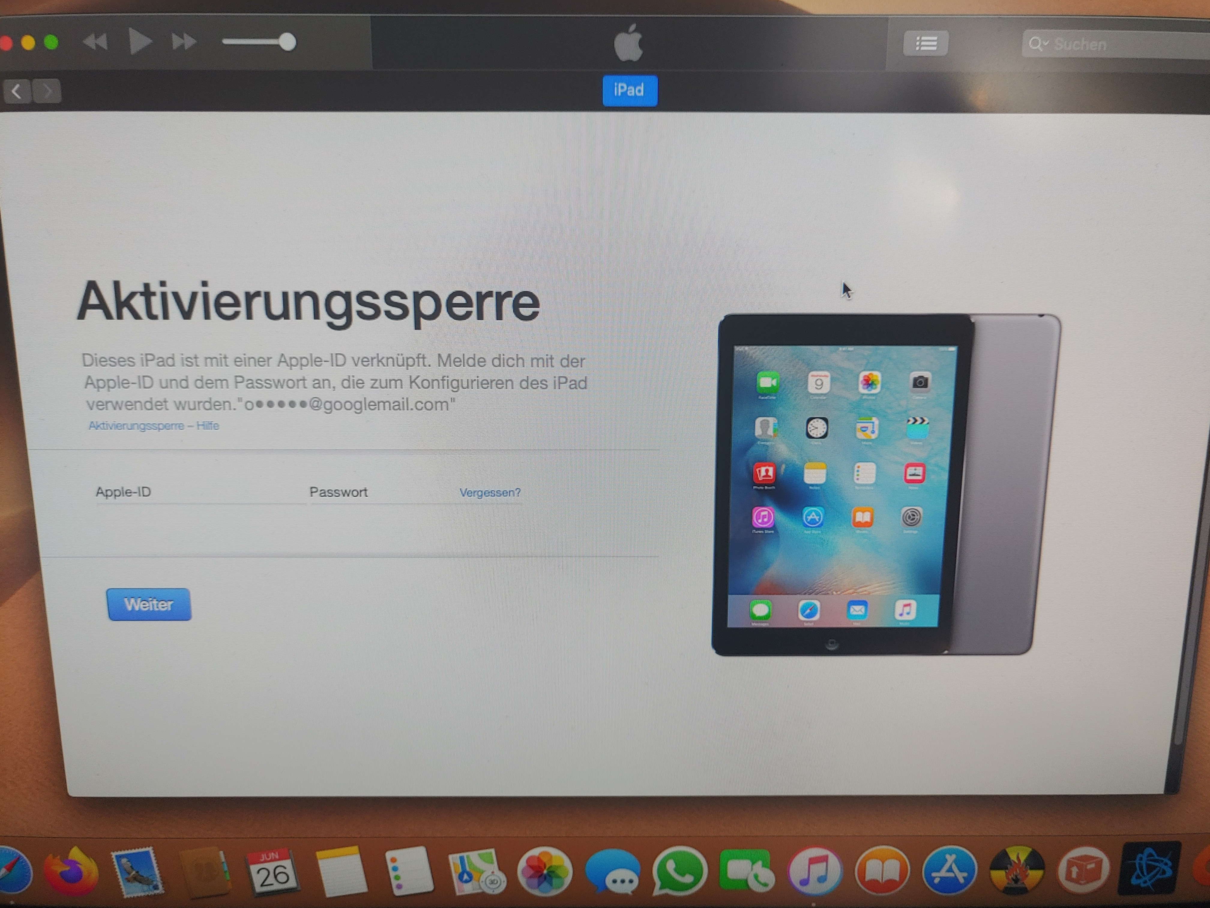 Ich habe folgendes Anliegen , vor ca. Zwei Wochen habe ich ein iPad Air 1. über eBay gesteigert , ich habe das Passwort was mir der Vorbesitzer aufgeschrieben hat verwendet ,es war aber nicht richtig und das iPad wurde gesperrt , die Aktivierungssperre blieb aktiv und die Möglichkeit des Aktivierens über Code viel ,weg jetzt wird ausschließlich die Apple ID verlangt zum entsperren , ich habe den Vorbesitzer kontaktiert ,der sagt mir dass das Gerät im Account gelöscht ist ,was aber nicht sein kann da die Sperre immernoch aktiv ist , was kann ich jetzt machen?