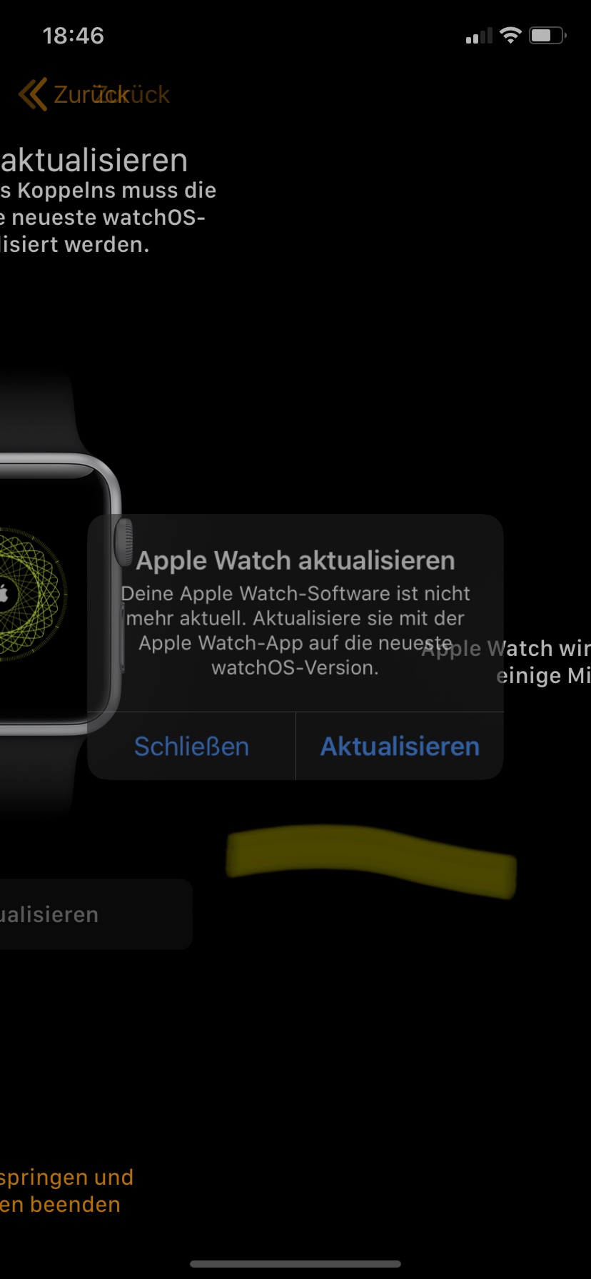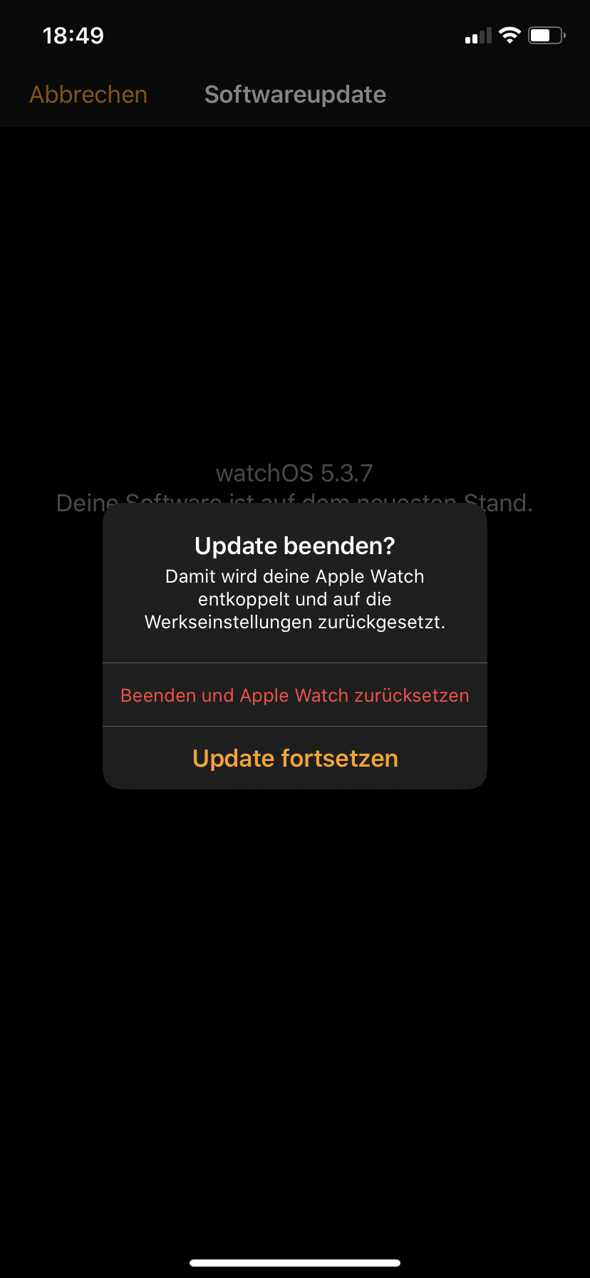 Ich habe seit dem watch os update 5.3.7 auf meiner apple watch series2, Probleme meine watch mit dem Iphone(XR Software 13.5.1) zu verbinden! Das Problem ist das ich bei der Apple watch gar nicht mehr ins Menü komme! Ich bleibe im Kopplungsbildschirm auf der watch (Grüner Kreis) hängen und am Iphone wird mir angezeigt ich müsste auf die aktuelle Software aktualisieren nur um dann anzuzeigen das die watch die aktuelle Software besitzt! Danach kann ich nur mehr abbrechen, das würde die watch aber wieder entkoppeln.Bei update fortsetzten passiert dann nichts mehr! Habe die Uhr Hard resetet,bluetooth getrennt, sie aus meiner Cloud entfernt, ich weiß nicht weiter es kommt immer der gleiche Ablauf! ich kann auf der Uhr nur die Sprache und Region einstellen!