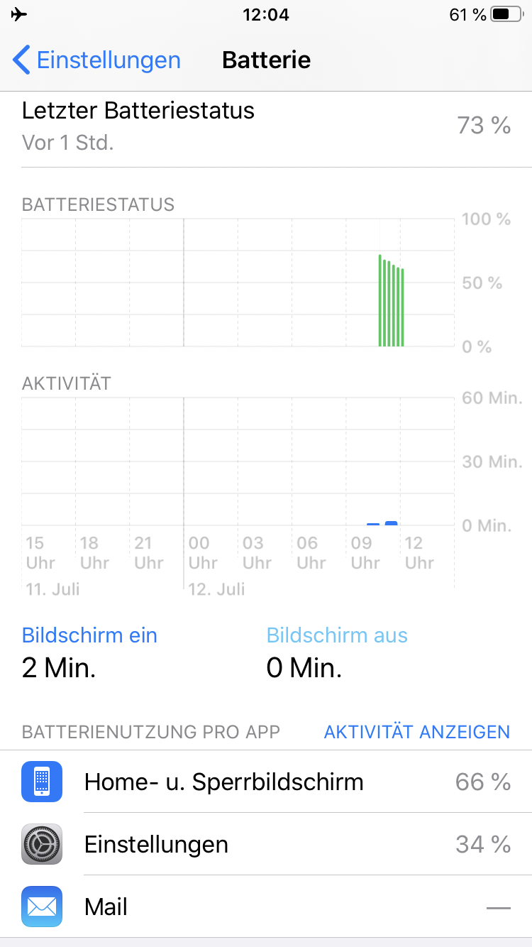 Ich hatte schon einige Iphones aber trotz Standby entlädt sich auch das komplette neu aufgesetzt Iphone (via itunes) um 3-4% Stunde. Als Akkuverbrauch wird nur der Sperrbildschirm und das Mailprogramm angezeigt. Aber auch ohne das Mailprogramm ist die Entleerung Identisch. Batteriesparmodus bringt auch kaum bis keine Verbesserung nicht mal der Flugzeugmodus. Sowas habe ich noch nie erlebt.