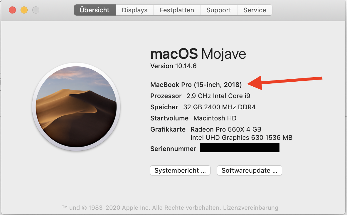 Hallo, ich möchte herausfinden was mein MacBook für ein Baujahr ist usw. macbook13