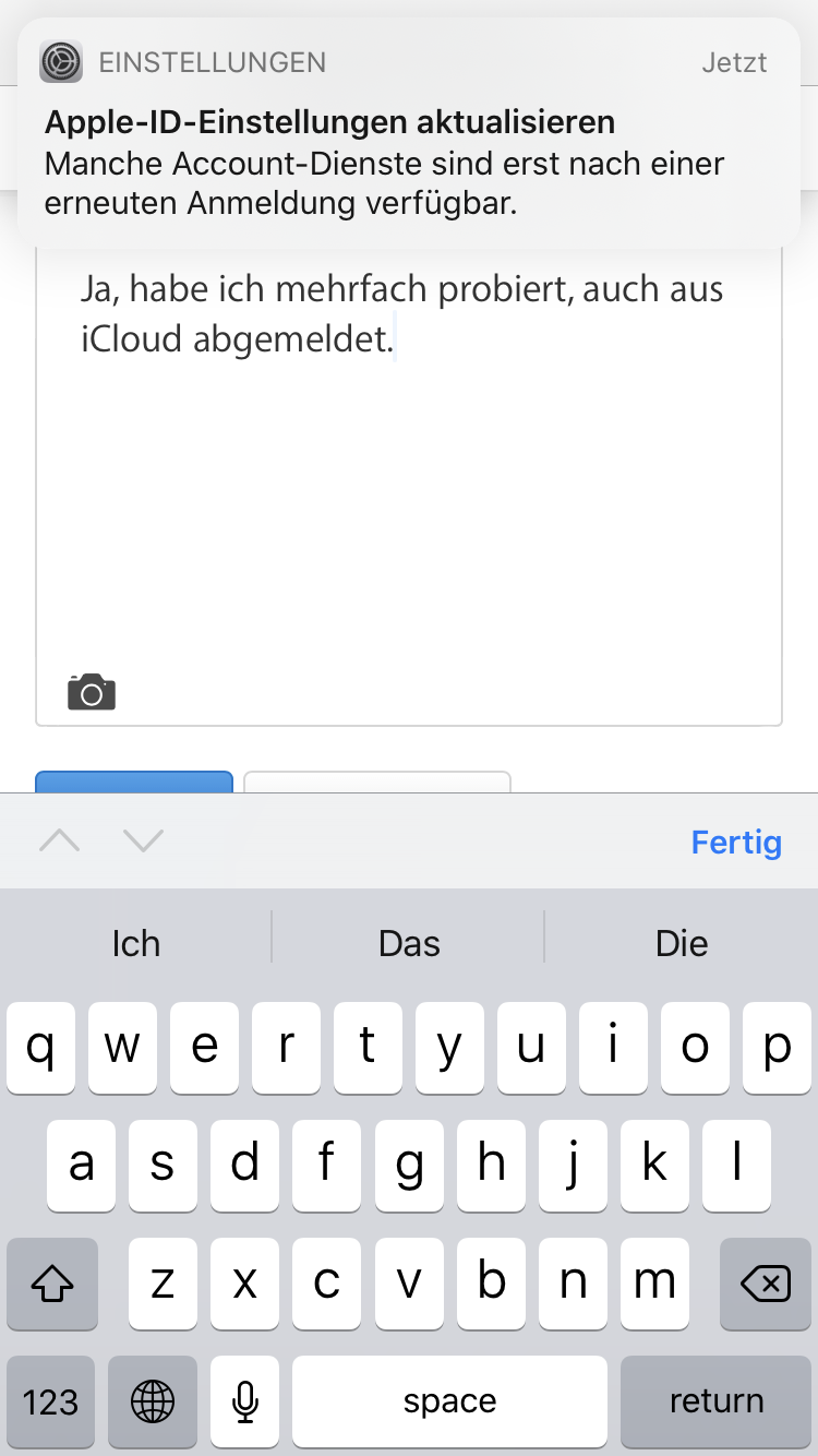 Jetzt kommt die Aufforderung: Wenn Sie iCloud weiter nutzen möchten, bestätigen Sie Ihre ID!
