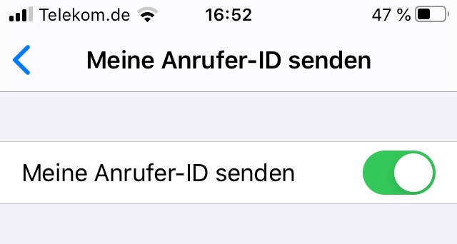 ich kann an meinem iPhone (iOS 13.5.1 die ID nicht mehr verändern. Wenn ich auf Telegon -> meine ID senden gehe, läd der Status für gewöhnlich ein paar Sekunden, dann erscheint der Schiebeknopf um es zu ändern.